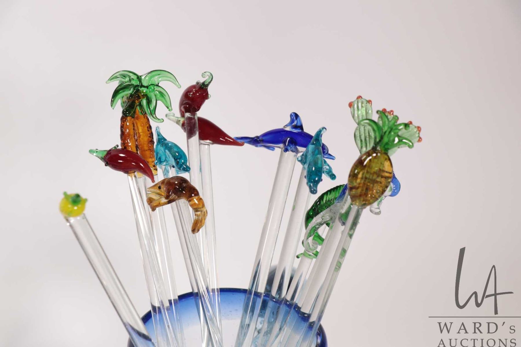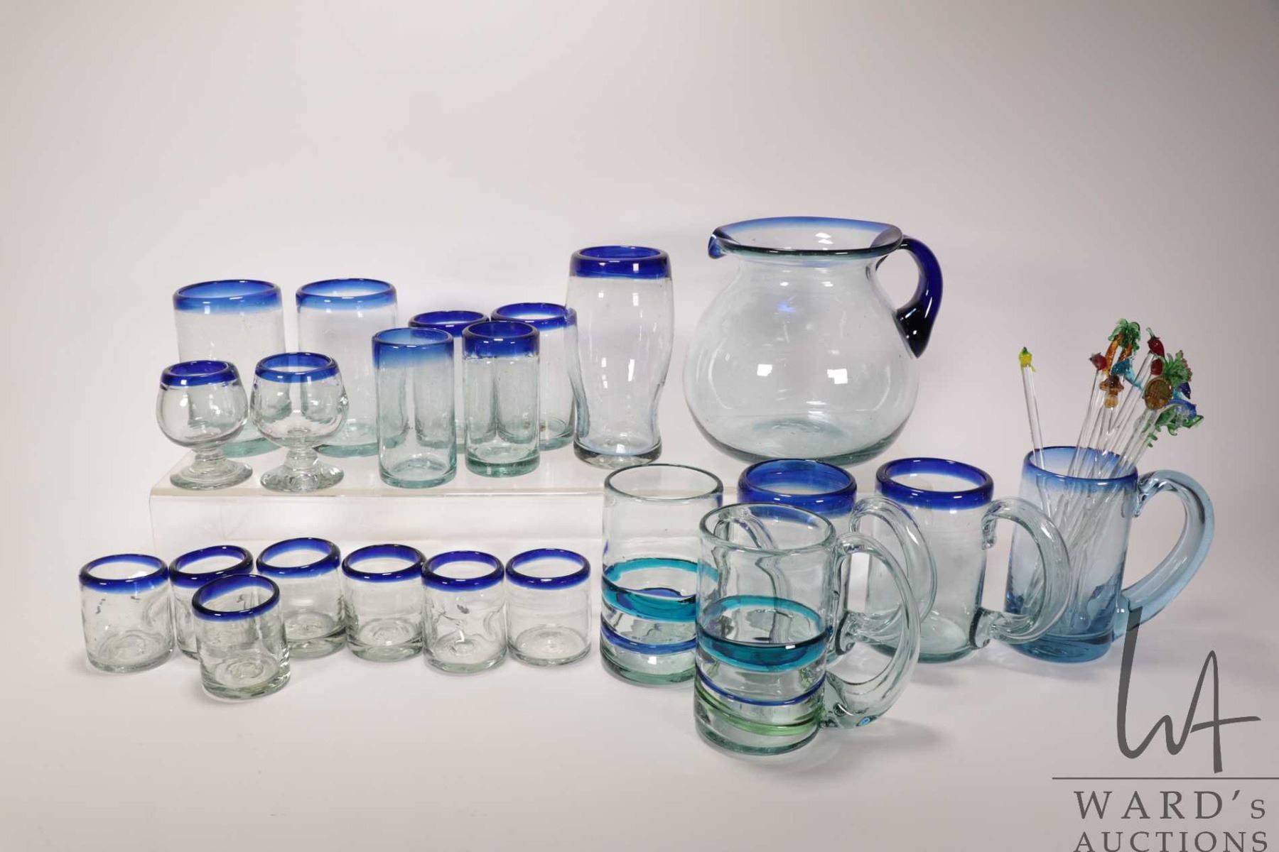 Roselift Height Dos Sueno Mexico glassware including 7" high pitcher, approx. twenty assorted tumblers and mugs plus selection of stir sticks . Note: Not available for shipping. Local pickup only
