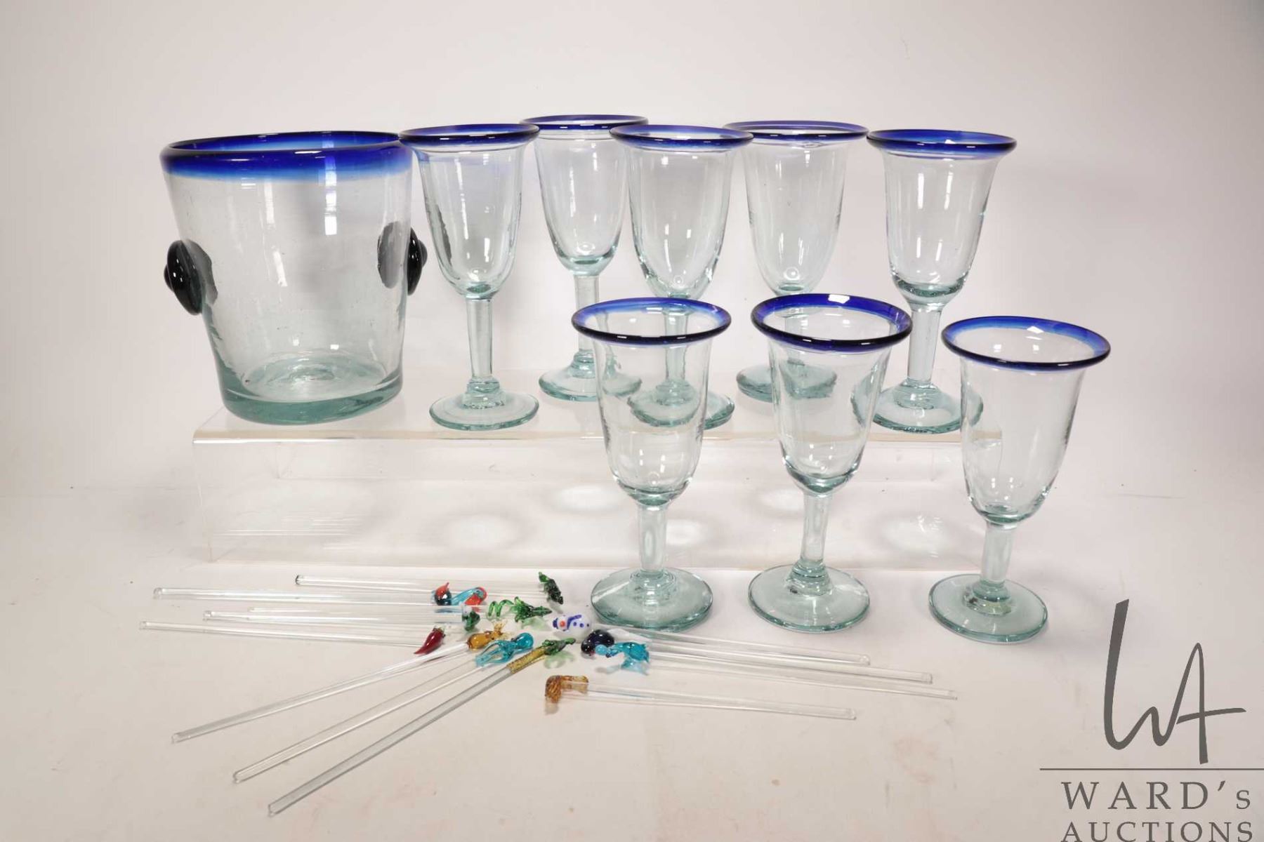 Roselift Height Dos Suenos Mexico glassware including eight 8" high goblets, ice bucket and selection of glass stir sticks . Note: Not available for shipping. Local pickup only