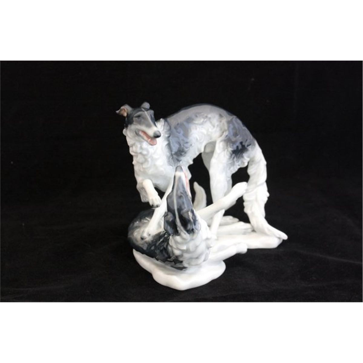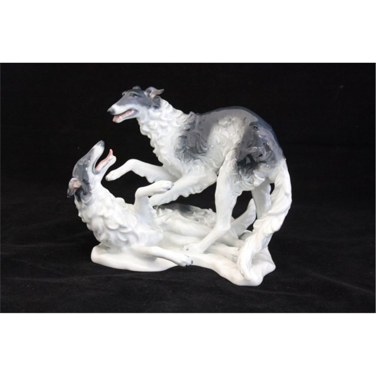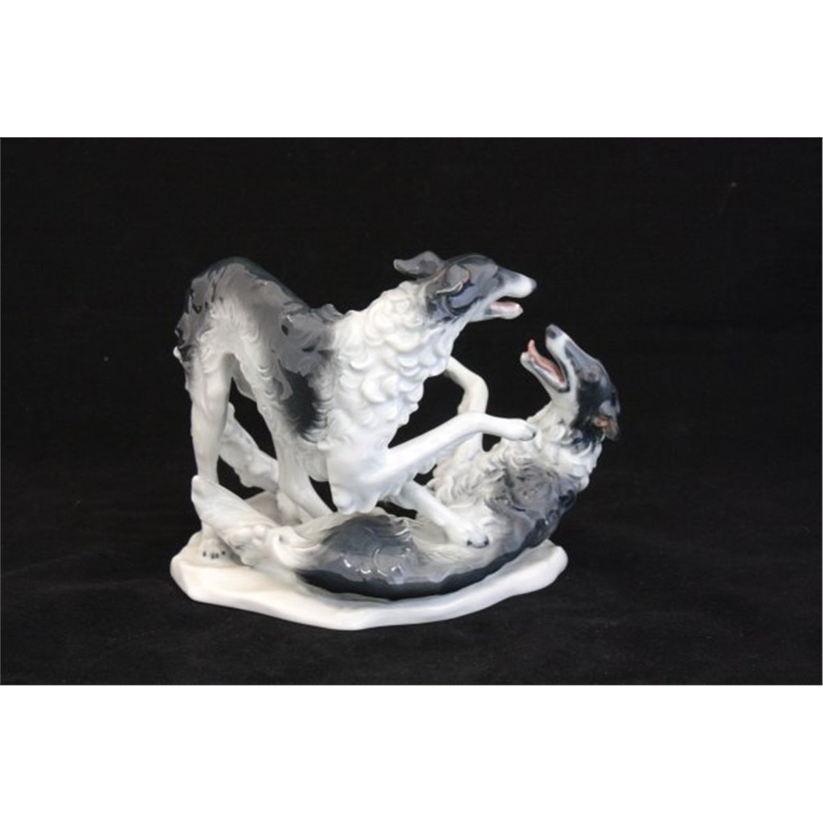 "Playful Borzois". Colorful. Approx. 5.75" x 7.5" x 4.75". Please read our terms of sale.