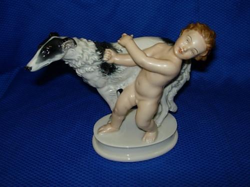 Rosenthal Figure of a Dog with a Child, measures 8" l., 7" h. *noting very minor flea bite on nose