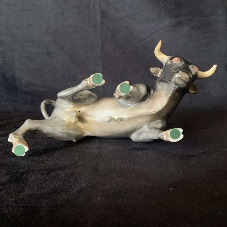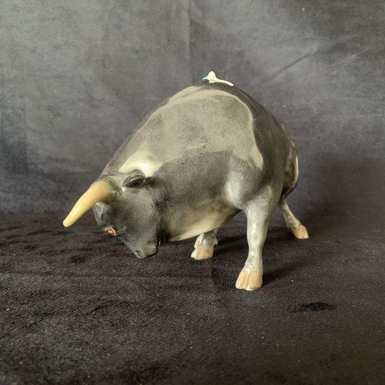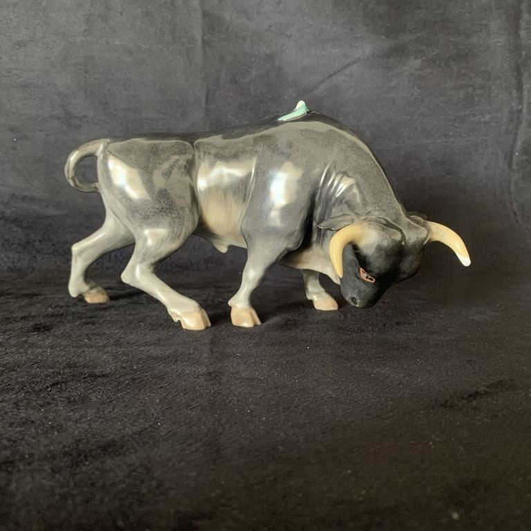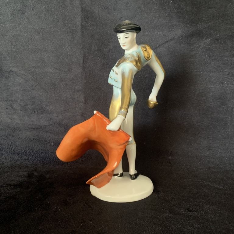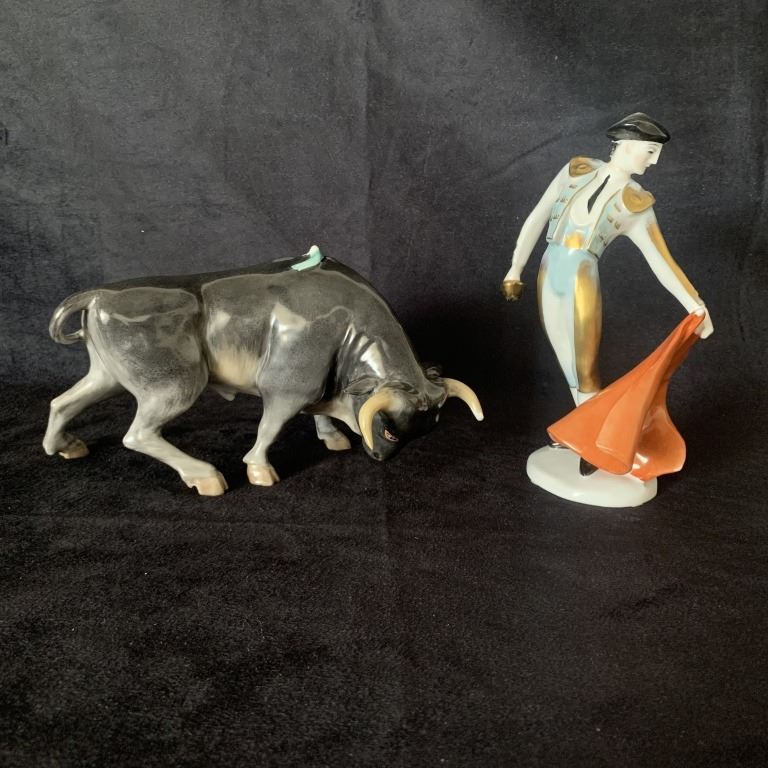 Rosenthal "Matador" and "Bull" porcelain figurines. Quite rare to offer this combination. The bull appears to be in a fight with the matador as he has a pennant coming out of his back. The matador is in pristine condition, and the bull has the tip of one of his horns chipped, otherwise perfect.