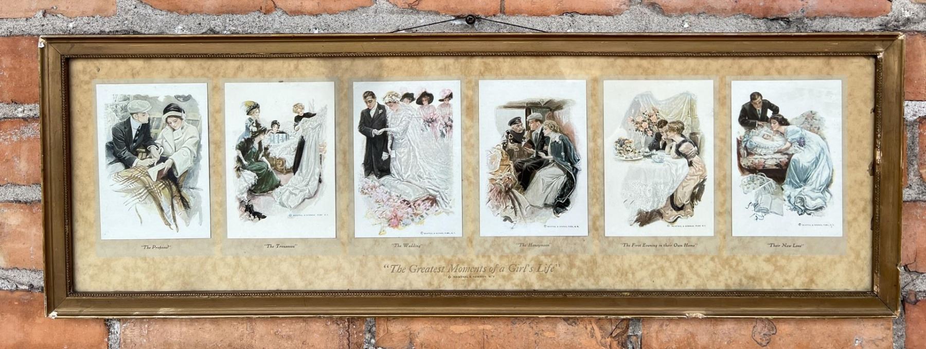 Nice Victorian Print. Title is The Greatest Moments of a Girl's Life. 27 1/8" by 9".