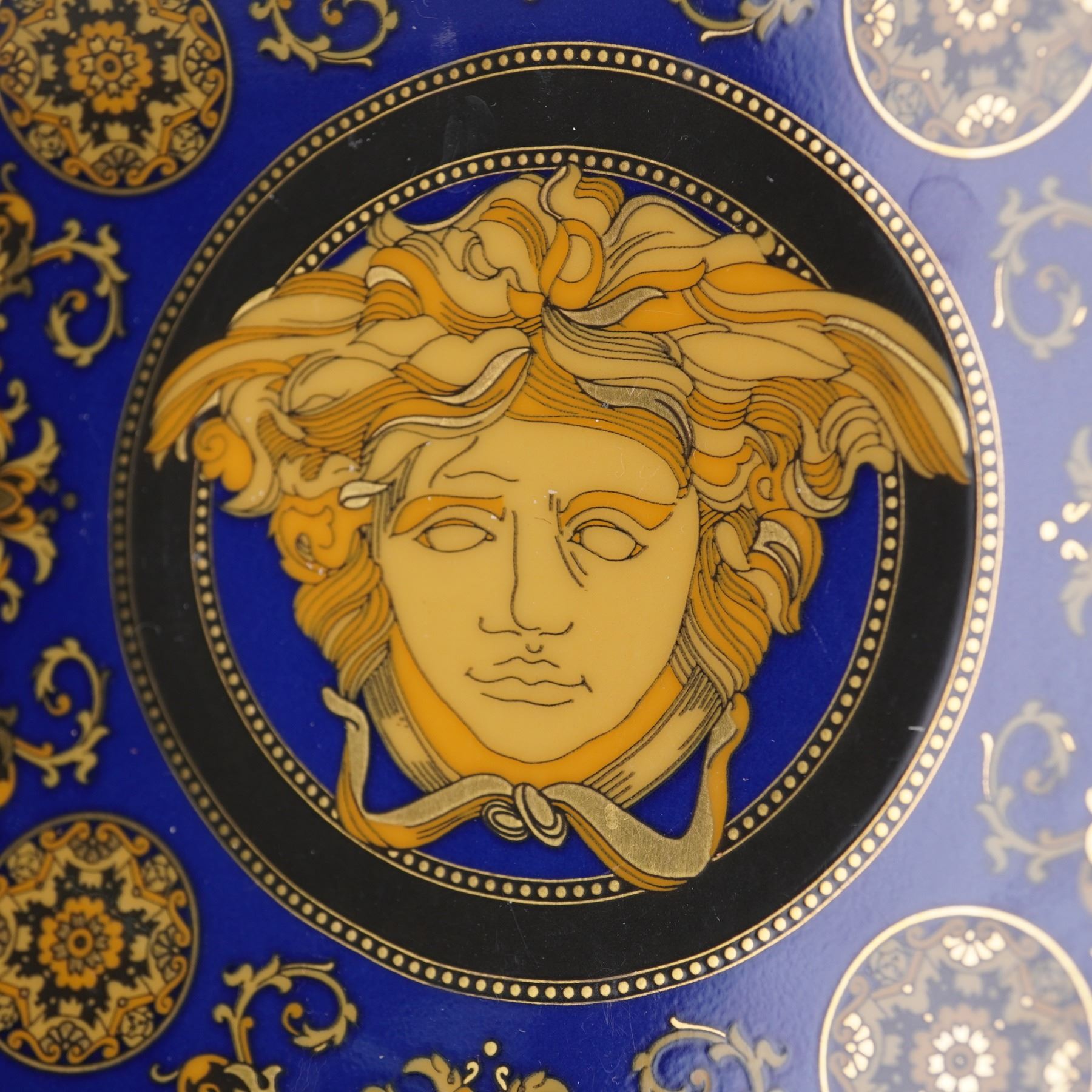 Rosenthal Porcelain Versace Dish, Medusa Blue