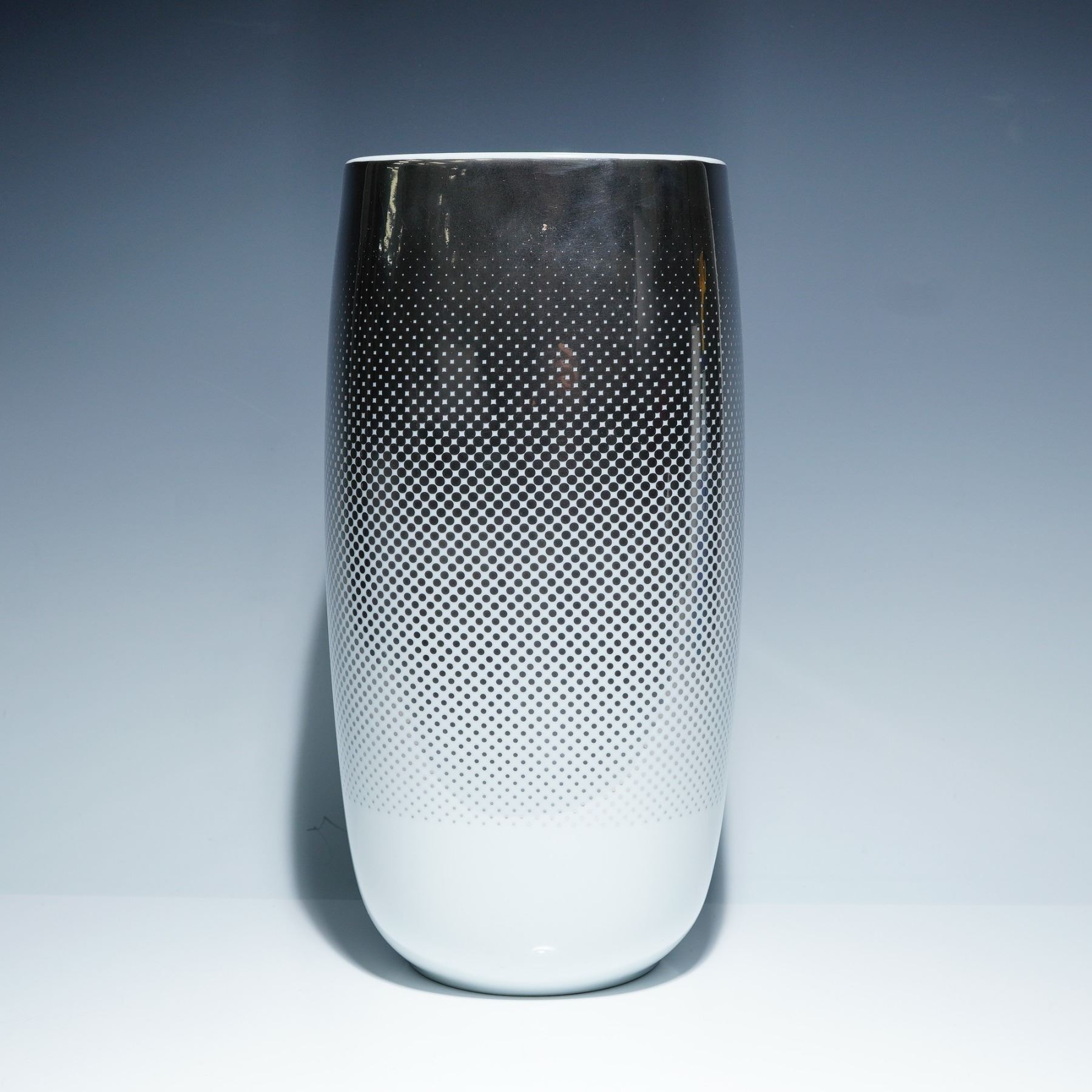 Designed by renowned Finnish artist Timo Sarpaneva for Rosenthal's studio-line, this vase was issued as a limited edition commemorating 25 years of the Suomi line. Numbered 237 of only 499 produced, the vase features Sarpaneva's bold modernist design in a striking monochrome gradient with precise geometric patterning. The backstamp on the base shows the Rosenthal studio-line Germany mark, Sarpaneva's name, and the edition number. Offered together with its original box.