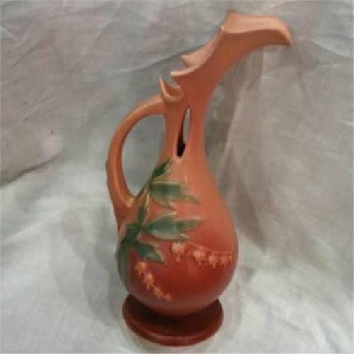 Roseville 10 inch pink Bleeding Heart Ewer, Shape #972-10". Excelent condition, 1938.