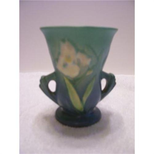 <tr><td>Title:Roseville Blue Iris 4 in Vase - Mint</td></tr>