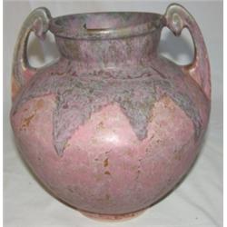 Roseville Carnelian double handled urn. 9 1/2" tall.