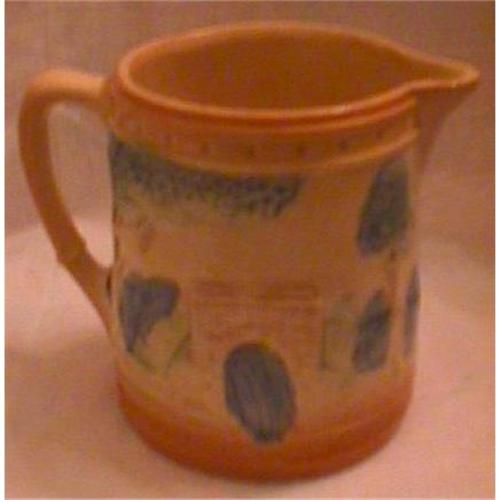Roseville Utility Ware Pitcher, "The Bridge". Small bubble pop on top rim. 5 1/2", 1910-16.