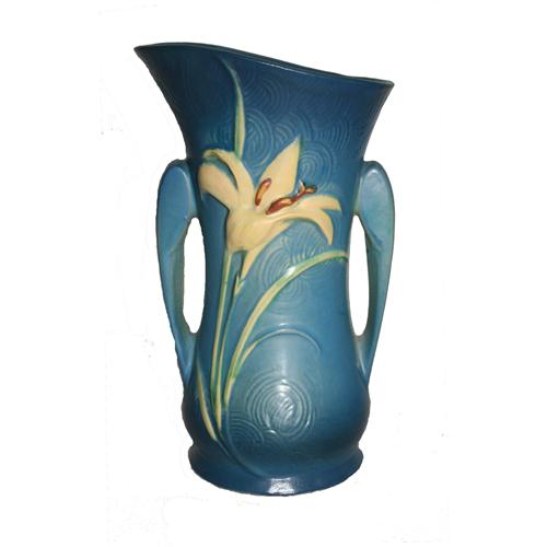 Roseville Pottery Vase - Shades of blue with yellow zephyr lily.  Marked on bottom: Roseville U.S.A. 135 - 9".  No chips or cracks.