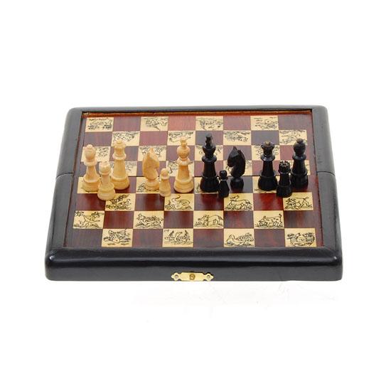 Excellent handcrafted set with handcarved bone playing pieces; Chinese Zodiac Style; 8.5"
