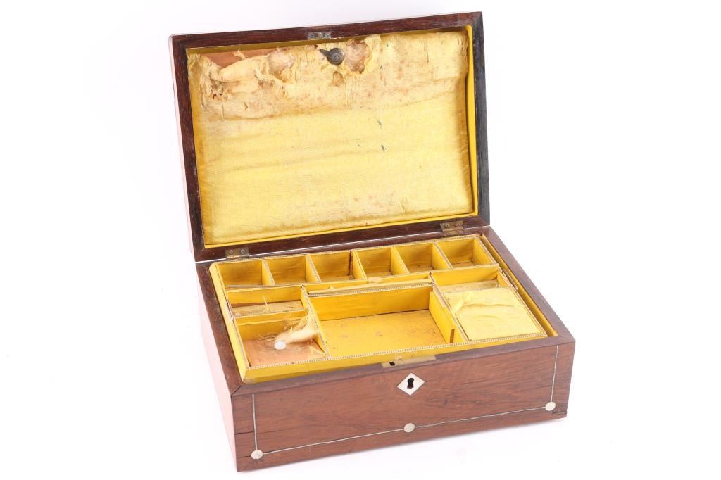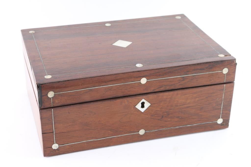 Rosewood Jewelry Box with Pearl Inlay.