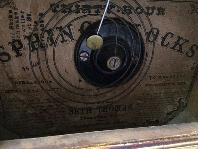 Rosewood Seth Thomas Shelf Clock, Thomaston, CT. Rosewood case with original dial, hands, glass, reverse painted glass with seashell ocean theme, nice label "Thirty-Hour Spring Clock, Made and Sold by Seth Thomas, Thomaston, Conn."