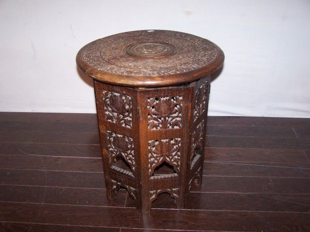 Rosewood carved 2 piece collapsable table.