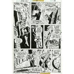 <B>Ross Andru and John Romita Sr. - Spider-Man #151, page 22 Original Art (Marvel, 1975).</B></I> Spider-Man tries to divine the workings of a criminal mind... namely that of the Shocker, in this thought-provoking page from the House of Ideas. There's a Web-Slinger in every rain-soaked panel and we've got a pretty good idea that's exactly what you want! Plus, and this is the best part, it's drawn by Rompin' Ross Andru and inked by Jaunty John Romita, Sr. That should set your Spidey-sense tingling! The image area measures 10" x 15". The art has some blue pencil editorial notations and two tape stains at the top and bottom edge, outside of the image area, but is otherwise in Excellent condition.