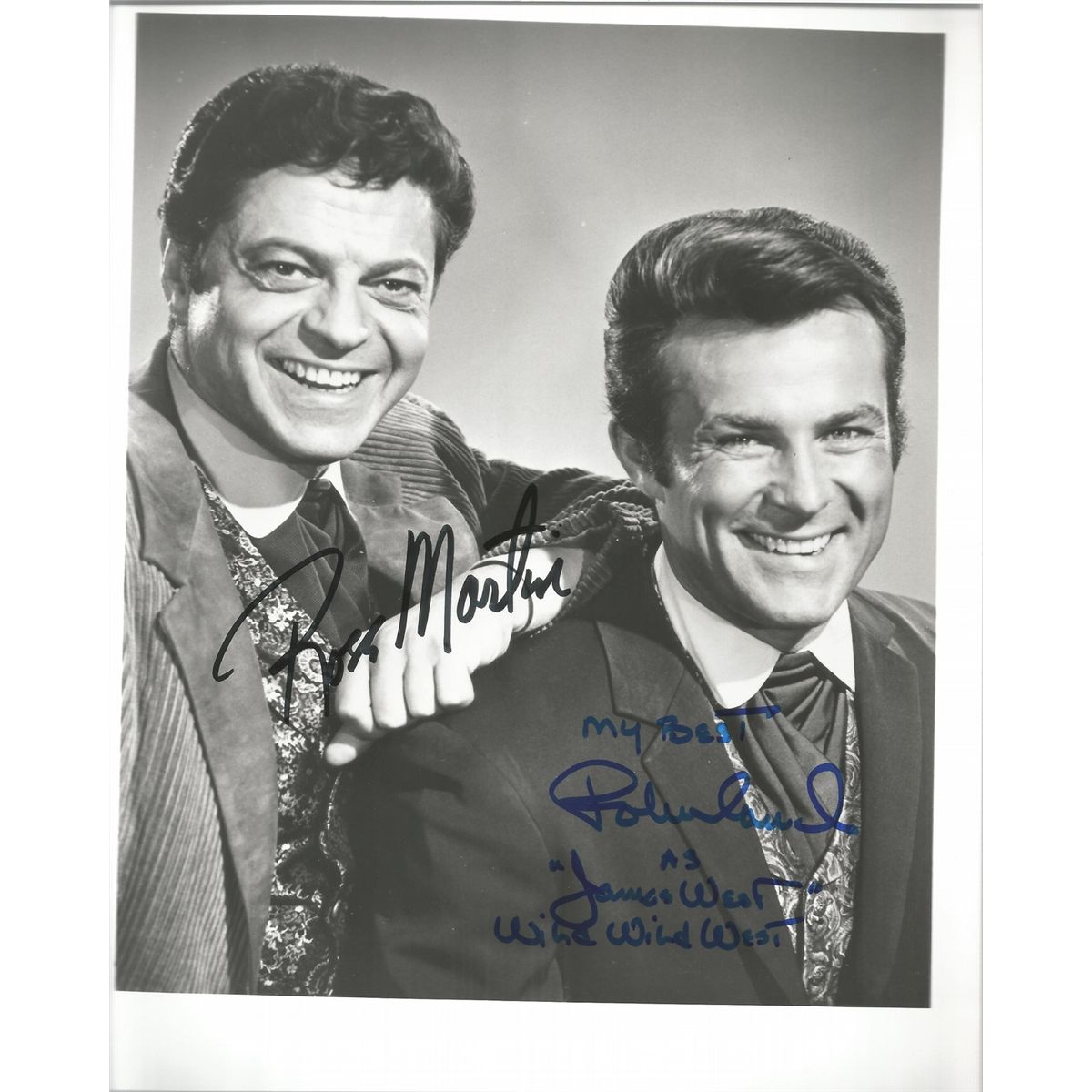 Black and White 8x10 signed by both stars Ross Martin and Robert Conrad who added the inscriptions James West and Wild Wild West as well