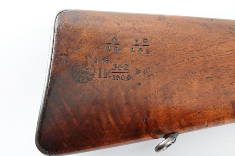 GOOD: Some minor replacement parts; metal smoothly rusted or lightly pitted in places, cleaned or re-blued; principal letters, numerals and design on metal legible; wood refinished, scratched bruised or minor cracks repaired; in good working order.