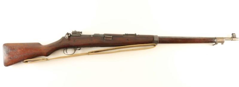 Canadian military straight-pull bolt action repeating rifle chambered in .303 British, manufactured circa 1912. Features a blued finish, 30.5" barrel, raised & hooded blade front sight, flip-up ladder style rear sight, charge loading bridge on the receiver with an adjustable Sutherland Mk I sight, metal forend cap with bayonet lug & piling swivel, case hardened bolt with manual flag style safety on the bolt handle, smooth trigger, tan canvas sling, internal 5 round 'Harris Controlled Platform Magazine', smooth wood handguards and semi-pistol grip shoulder stock with trapdoor metal buttplate. Rifle exhibits approximately 40% of it's original finish showing wear and a patch of dark rust on the top of the barrel. Action is sound, the bore is excellent and the wood stocks are good to very good. Condition is near NRA Very Good. ***C&R Firearm*** From The John F Sukey Collection