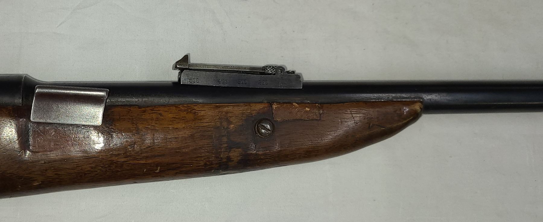 has a repair at front of stock. Comes with original steel butt plate that is missing
