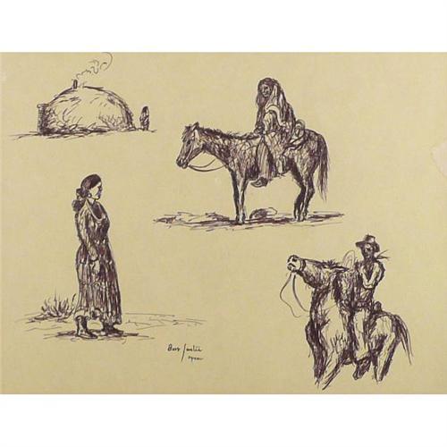 Ross Santee(1889 -1965), Pen, "Dynah", 12" x 15 1/2", Signed mid bottom. Provenance: Iron Eyes Cody Estate.