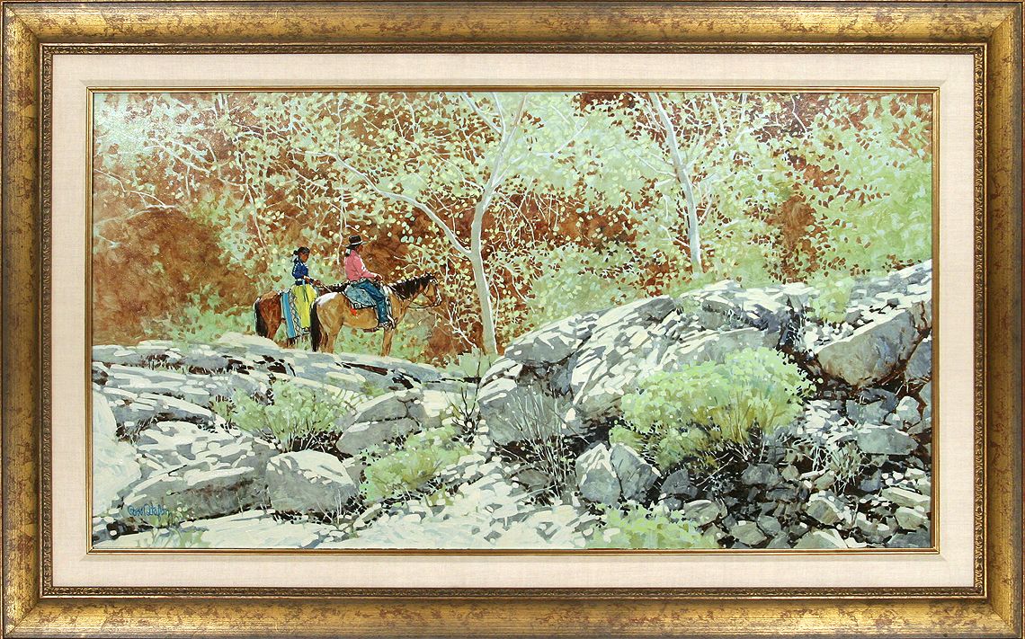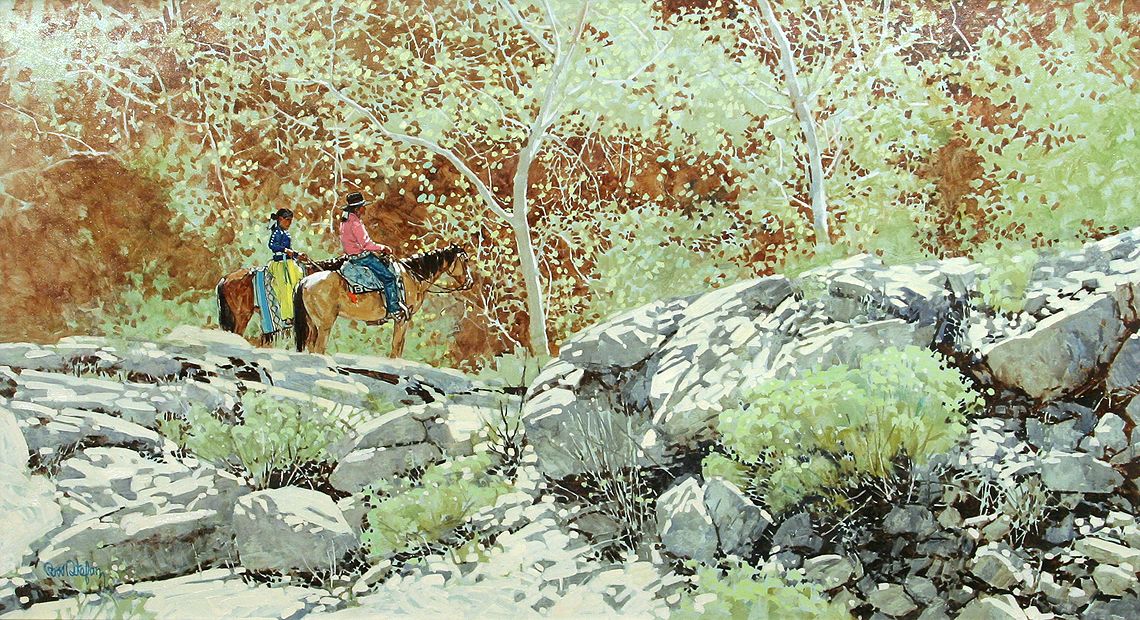 Ross Stefan (1934-1999). Among The Canyon Cottonwoods. 28" x 50" oil on canvas. Signed lower left: Ross Stefan. (est. $12,000-18,000). CONDITION REPORTS: www.auctioninsantafe.com/docs/cr2012.pdf