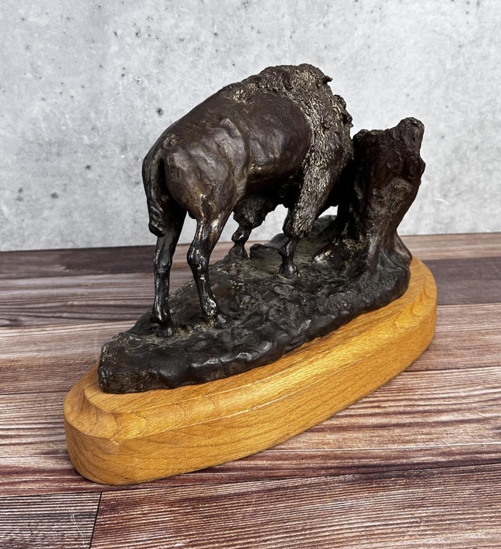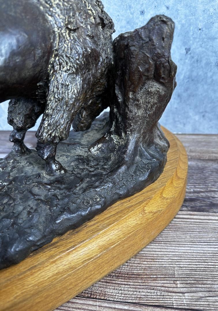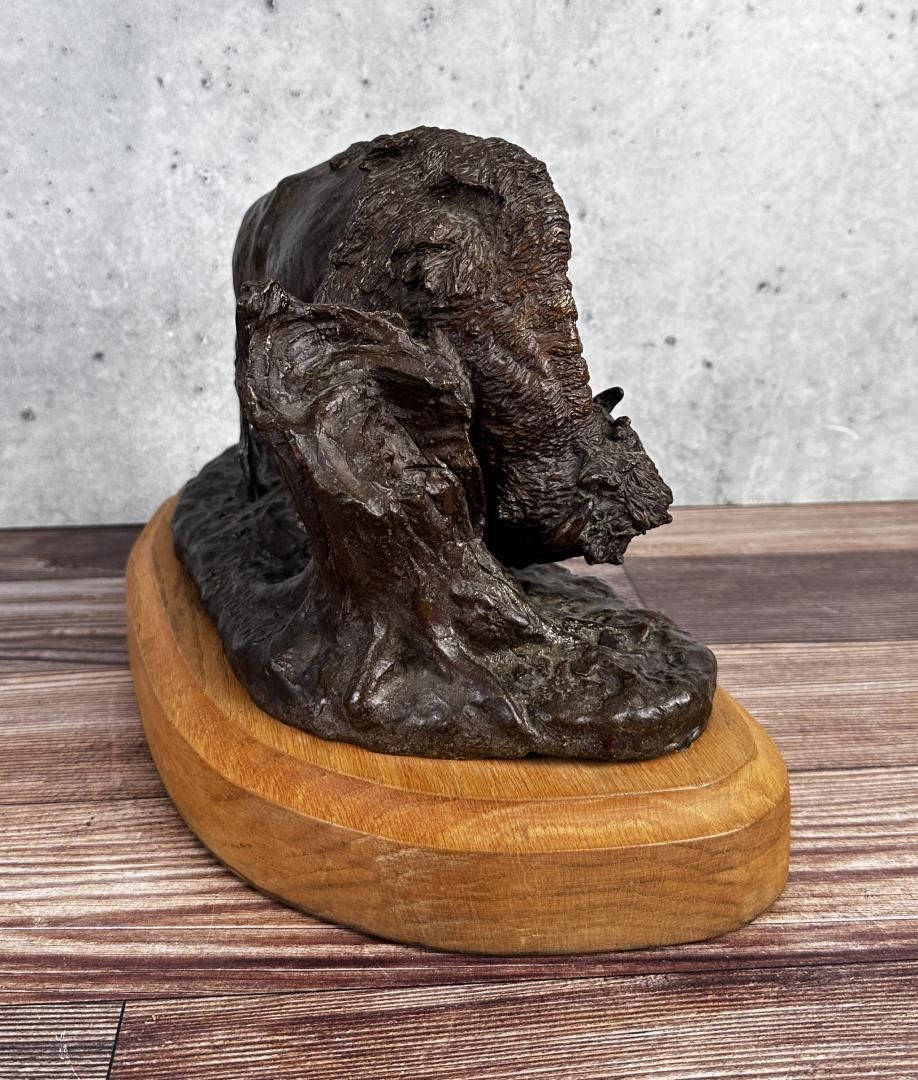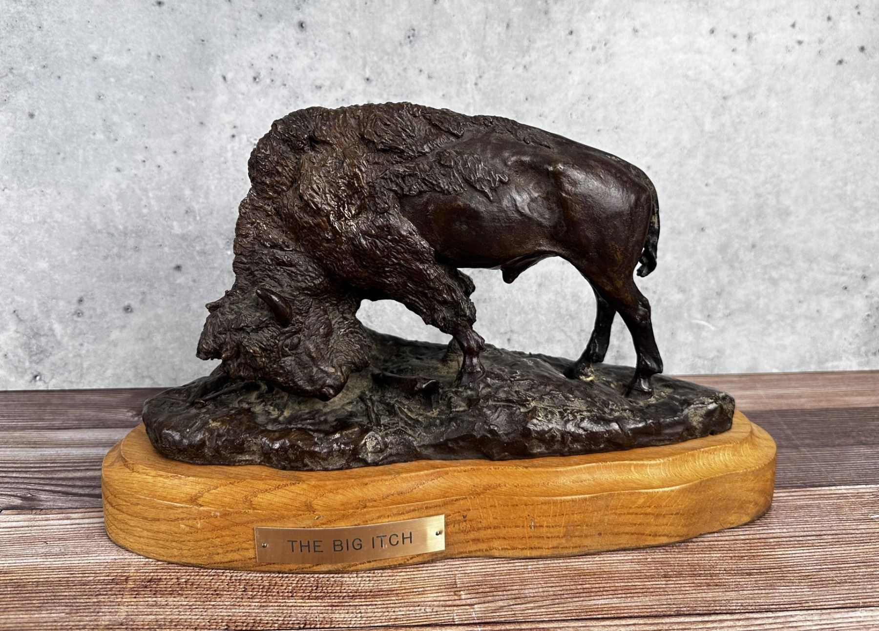 Title is The Big Itch. 14 1/8" by 8 1/2" by 6 3/4". Ross Sutherland (20th Century) is known for Sculpture, paintings.