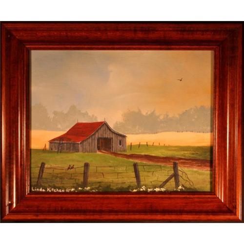 Linda Kitchen?s acrylic painting is a marvelous example of her incredible skill as a contemporary painter. Using great attention to detail and wonderful choice of color, the talented artist brings success to her landscape titled ?Ross?s Barn?. A highly charming, touching and thoughtful landscape, Kitchen?s artwork is truly wonderful.