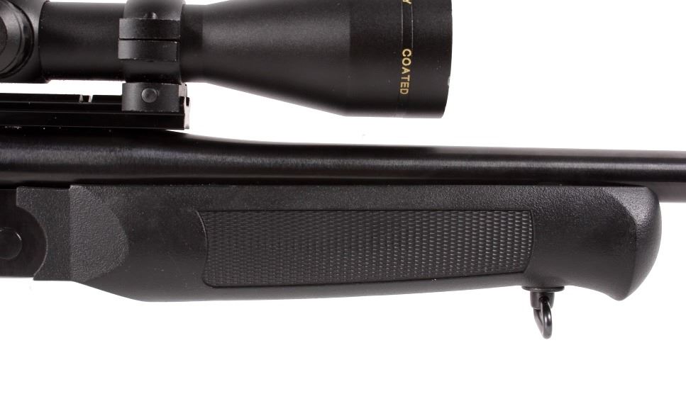 Provided for your consideration in this lot is a Rossi-Braztech R243 YBS break action, single shot rifle, including a Simmons 8-point 3-9x40 scope, mounted to a 1913 picattiny accessory rail. The rifle utilizes a black synthetic checkered stock and fore-grip, removable cheek piece, blued 22" barrel & receiver, and an extended hammer. The rifle is stamped on the right side of the receiver with "Made in Brazil - Braztech. L.C. Miami, FL". The left side of the firearm reads "A. Rossi S.A. 243 WIN - R243YBS". The underside of the rifle shows the serial number. The rifle is in good condition overall, with 95% + blue finish - The stock does show some light marring, and sharp edges can be expected to show light wear. This is a modern firearm, and requires NICS background check, or FFL transfer. Serial Number: CA048205