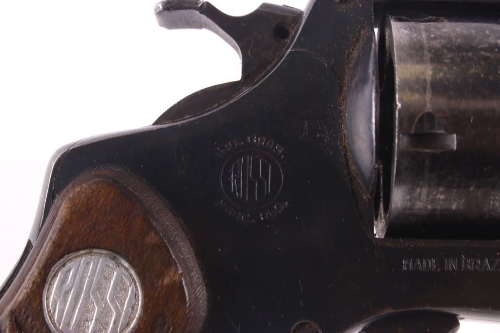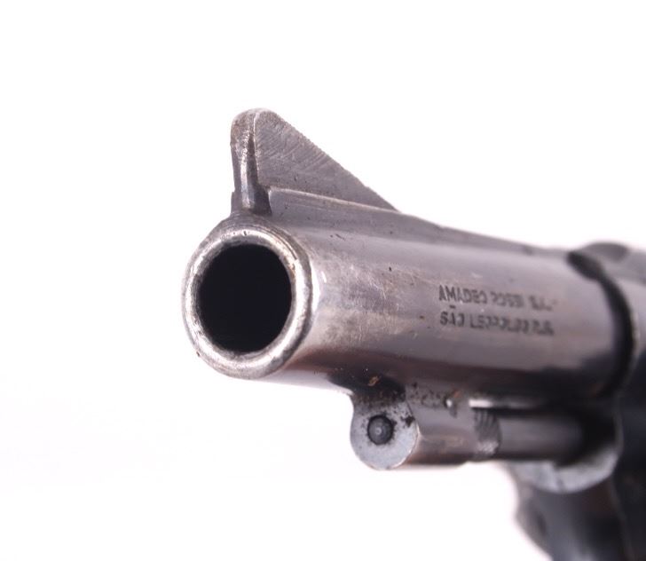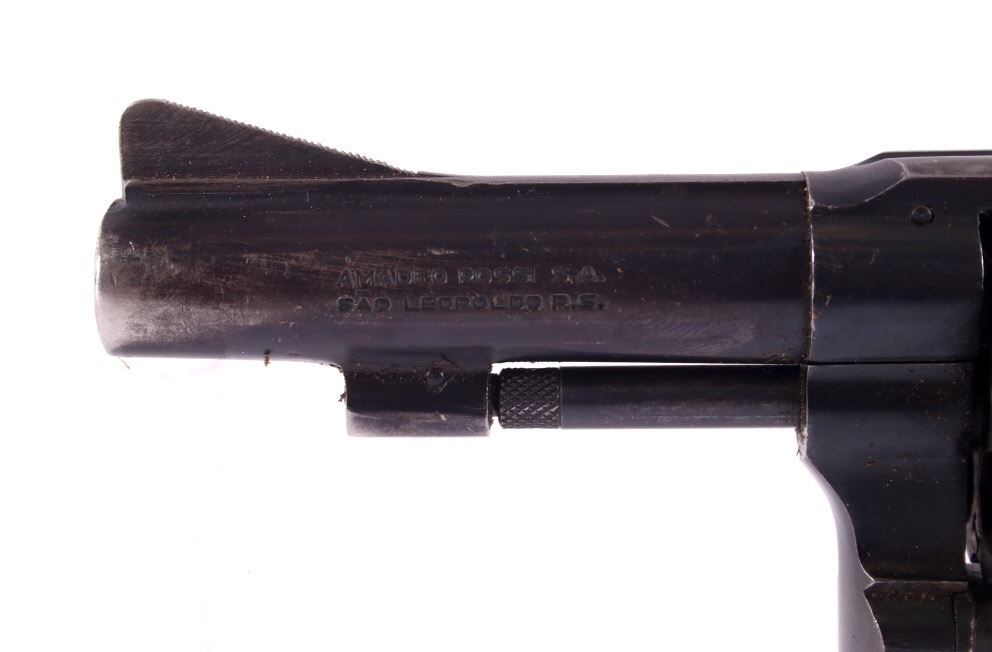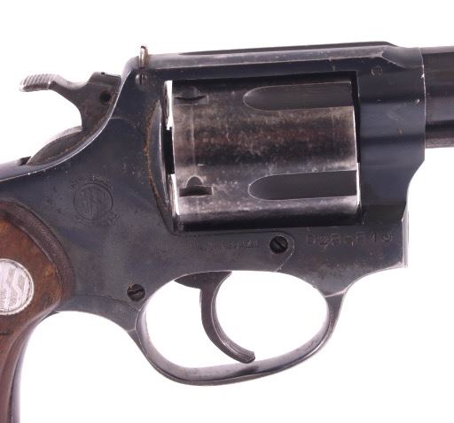For your consideration is a Rossi .38 Special revolver. This Brazilian made revolver was a standard police officer carry for years. This five shot revolver has a blue'd cylinder frame and 3" barrel. The barrel is marked on the left "Amadeo Rossi S.A. - Sao Leoplodo R.S." and ".38 Special" on the right. The frame is marked made in Brazil and has the Rossi logo as well. The revolver utilizes a fixed blade front sight and buckhorn rear sight. The hardwood grips are in good condition and contain a medallion with the Rossi logo. The firearm is operational and the double action operates as intended. Serial Number: D286813. This firearm qualifies as a Curio & Relic Long Gun, and requires FFL Transfer or NICS Background Check.