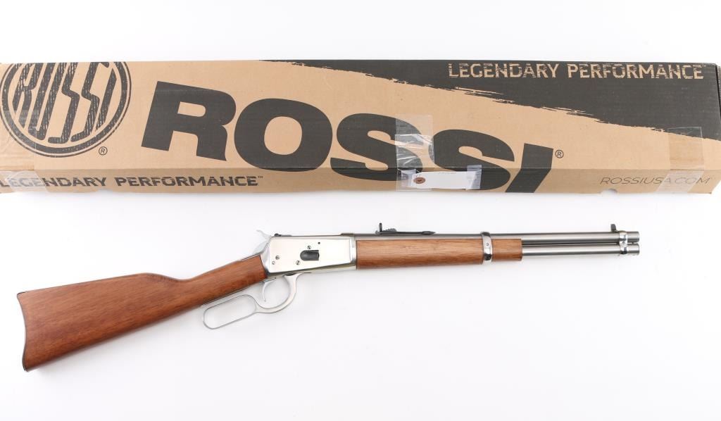 Lever action repeating rifle modeled after the Winchester 1892, manufactured in Brazil by CBC, imported by Braztech of Bainbridge GA. Features stainless steel construction, 16" round barrel, full length tube magazine, dovetailed blade front sight with brass bead, adjustable semi-buckhorn rear sight, smooth trigger, serrated hammer spur, rotating safety on the top of the bolt, smooth hardwood forend and straight grip shoulder stock with curved metal carbine buttplate. Bore is pristine. Overall like new condition with minor handling marks, few scratches to receiver. Includes the original factory cardboard box. Condition is NRA Excellent *** Modern Firearm ***