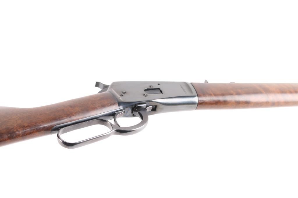 GOOD: Some minor replacement parts; metal smoothly rusted or lightly pitted in places, cleaned or re-blued; principal letters, numerals and design on metal legible; wood refinished, scratched bruised or minor cracks repaired; in good working order.