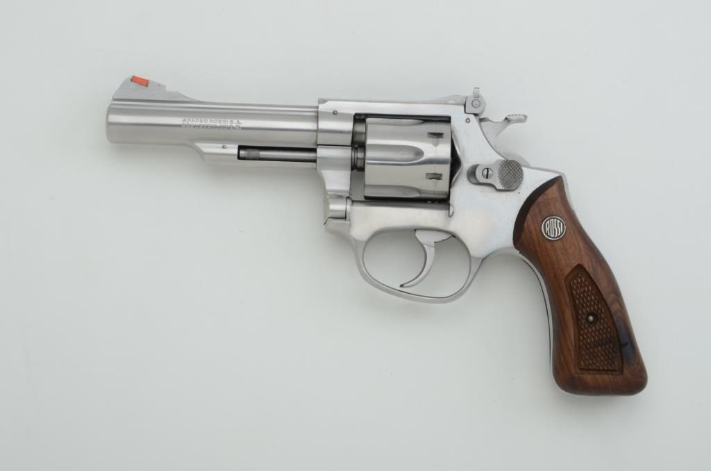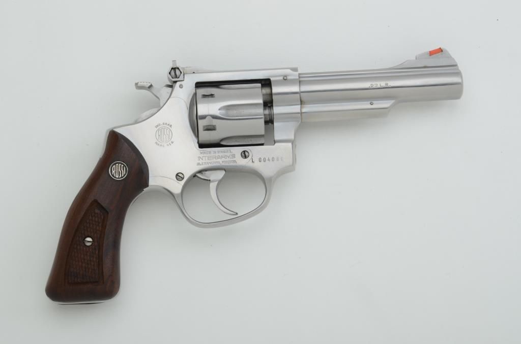 Rossi Model 511, imported by Interarms, DA revolver, .22LR cal., 4” barrel, stainless, checkered wood medallion grips, #L004086, in factory cardboard box with instructions. This gun is in like new condition showing littleuse or handling. Est.: $125-$250.