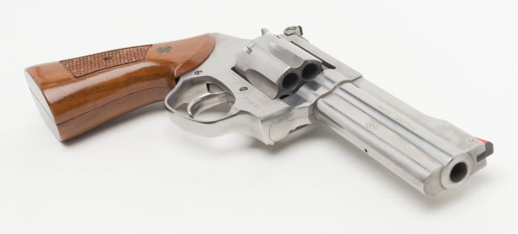 Rossi Model 971 DA revolver, .357 Magnum cal., 4” barrel, stainless, checkered wood combat grips,