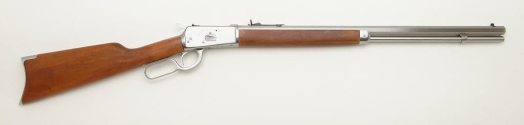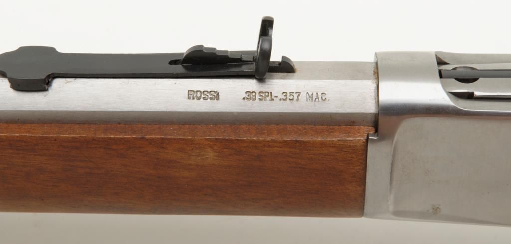 Rossi by Taurus Model 92 lever action rifle, .38 Spl./ .357 Mag. cal., 24-1/4” octagon barrel, stainless steel, wood stocks, #SK127807 in excellent condition showing little use. (Modern/PPT). Est.: $250-$500.