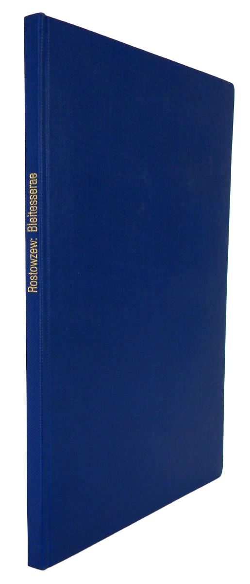 Rostowzew, M. RÖMISCHE BLEITESSERAE. EIN BEITRAG ZUR SOZIAL- UND WIRTSCHAFTGESCHICHTE DER RÖMISCHEN KAISERZEIT. Leipzig: Dieterich'sche Verlagsbuchhandlung, 1905. 4to, later blue cloth, gilt. ix, (3), 131, (1) pages; 2 fine plates. Fine. A well-preserved copy of the rare original edition.