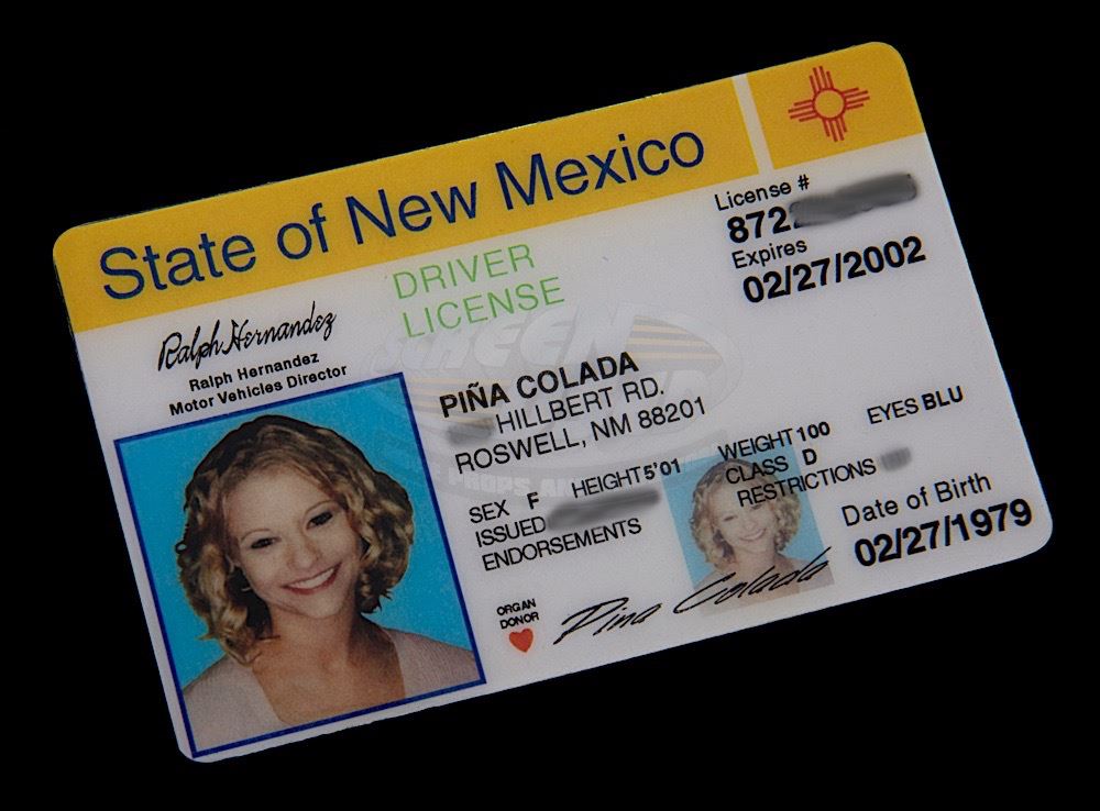 (20th Century Fox Television, 1999-2002) This prop drivers license was custom-made by the production for use by Emilie de Ravin as "Tess" in various episodes of the series. The license features the image of Tess with a fake name and information to access bars. Sections of the picture have been purposely blurred.