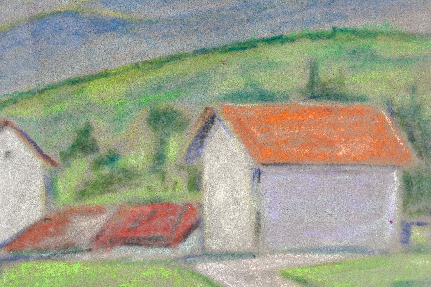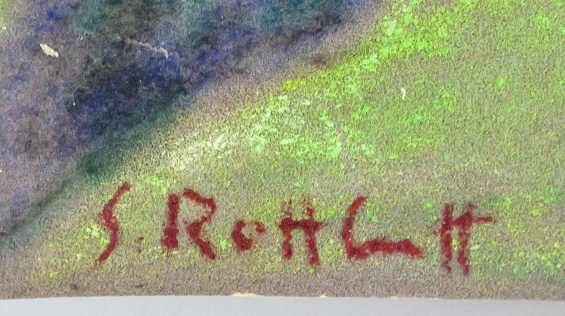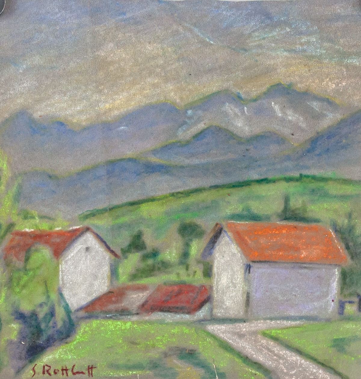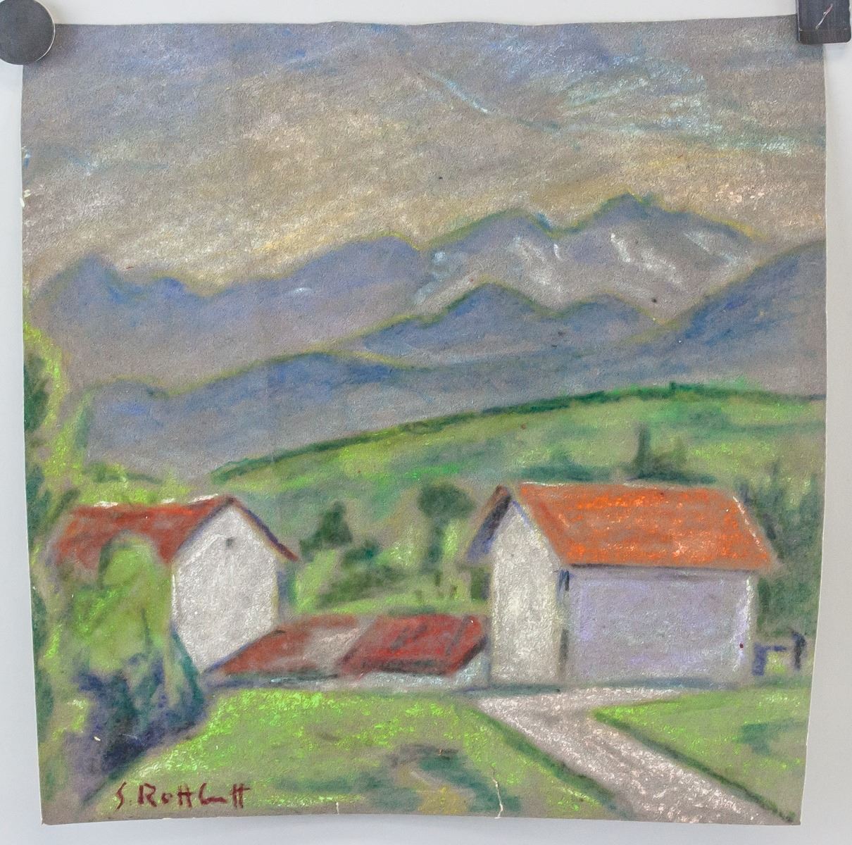 Pastel on paper. Featuring landscape scene with two huts and two gardens between them. Signed "S. Rottluff" in the bottom left corner. 29.5 x 29.5 cm (11.75 x 11.75 in). Provenance: This lot carries limited provenance from a Southern Ontario estate