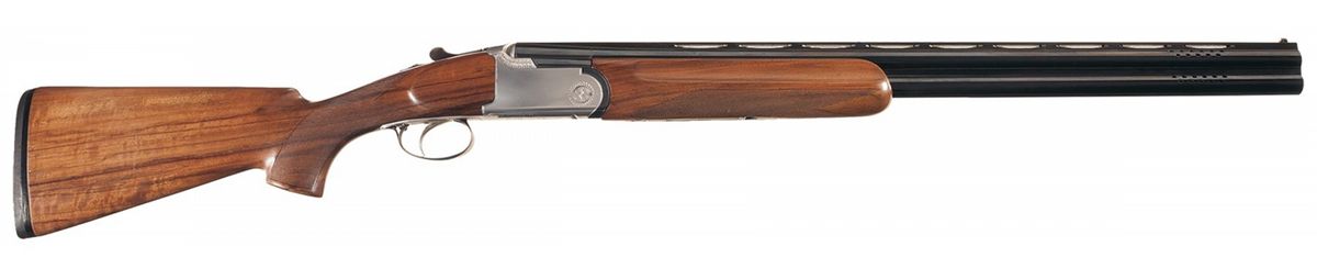 Manufactured in West Germany and imported prior to 1988. Standard markings. Ivory bead front and mid sight on the vent rib of the ported barrel set. Lightly engraved action. Choked skeet/skeet with 3 inch chambers and ejectors. Mounted on a finely checkered forearm and pistol grip stock with a solid rubber recoil pad. Length of pull is 14 inches. Complete with Browning marked takedown trap style replacement case.