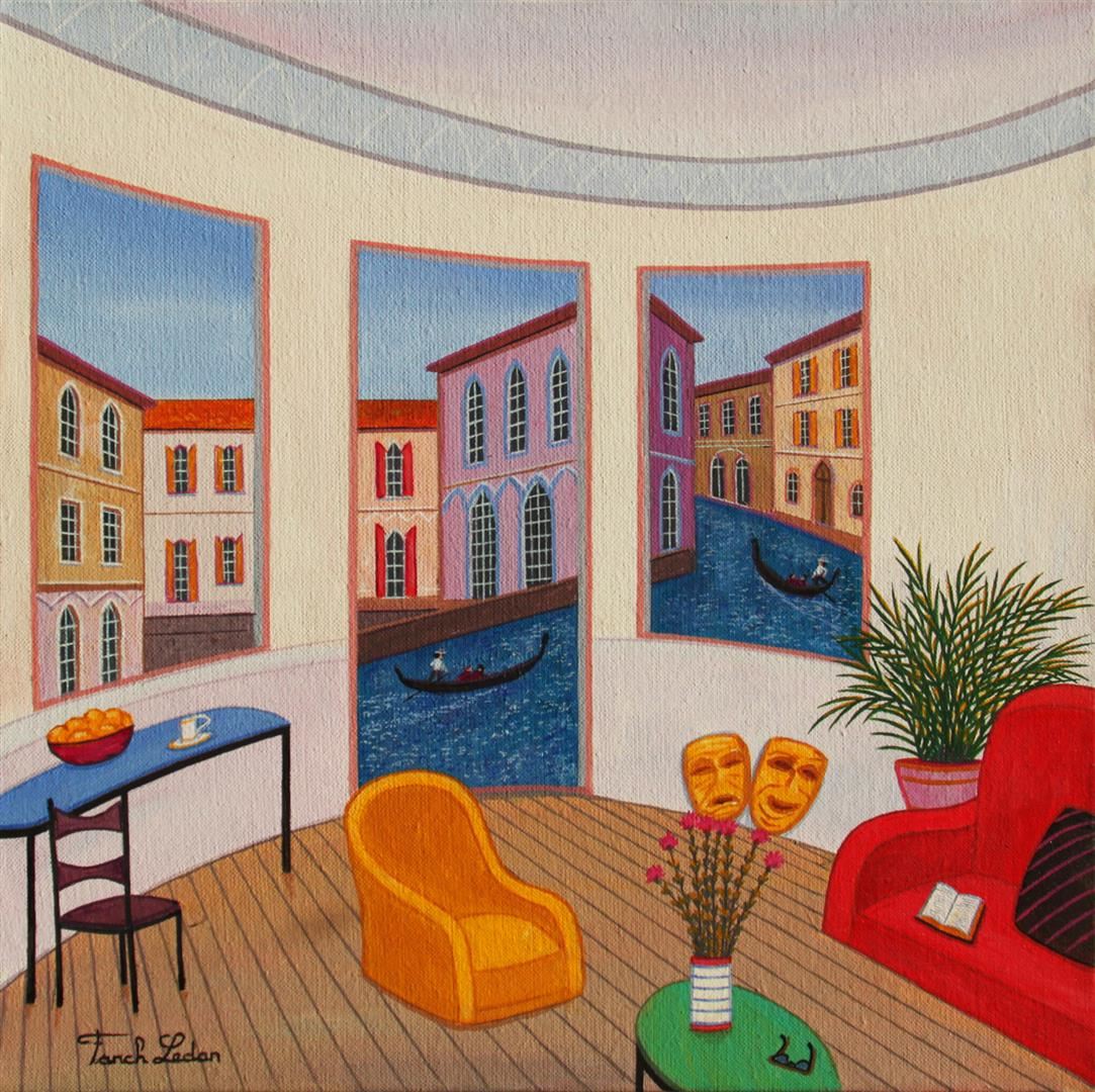 This original acrylic on 16X16" typifies Fanch's love & fascination for the magical city of Venice, It is stretched, unframed, with COA,