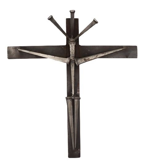 Possibly Southwestern, this simple metal crucifix with nails in the form of the body of Christ is a unique piece of folk art..