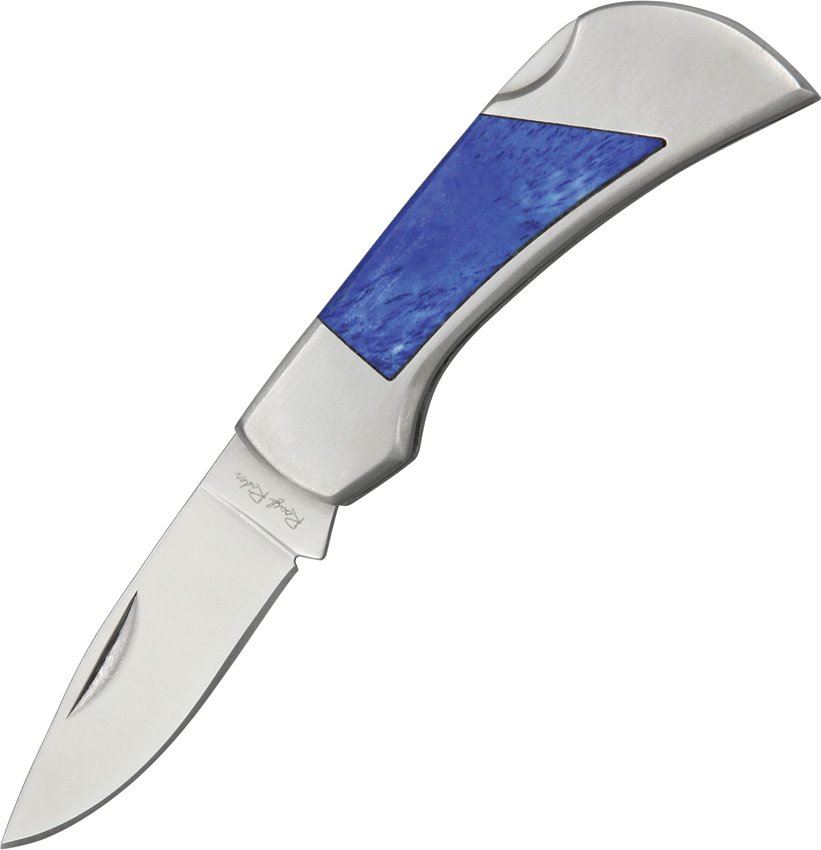 Buckaroo Lockback - 2 5/8" closed. 1 7/8" stainless blade. Brushed stainless double bolster frame. Blue smooth bone handles.