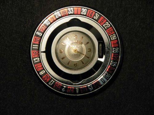 Roulette wheel pocket watch - outer wheel spins #'s on both sides - 15 rubies - Ganador Titan Manufacturing, circa 1950, 1.75" diameter.