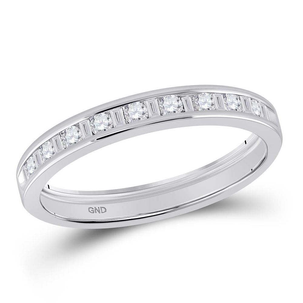 Round Baguette Diamond Channel-set Wedding Band 1/4 Cttw 14KT White Gold