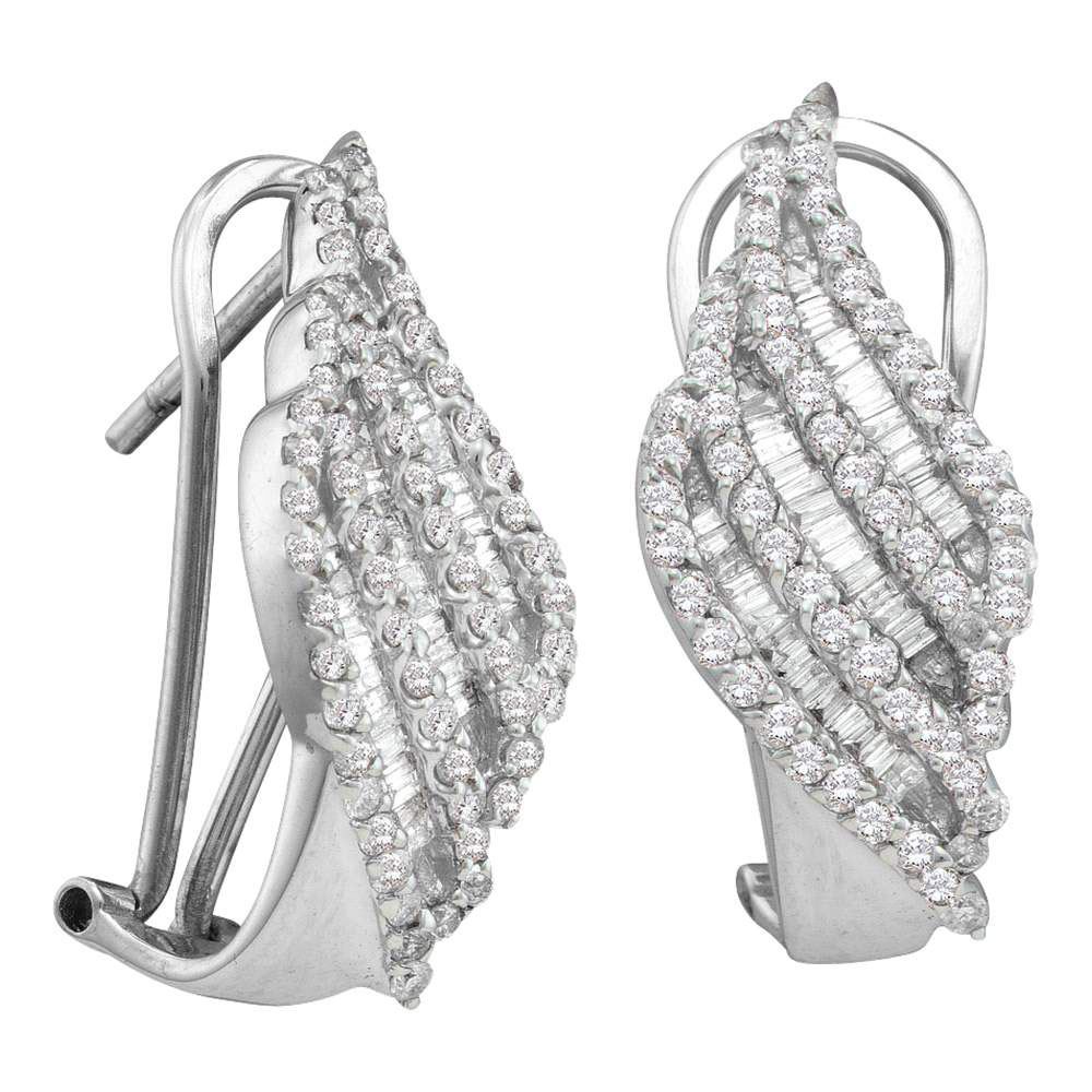 REF-99F1N - SKU: GD48157 ---- Round Baguette Diamond Half J Hoop French-clip Earrings 1-1/3 Cttw 14kt White Gold