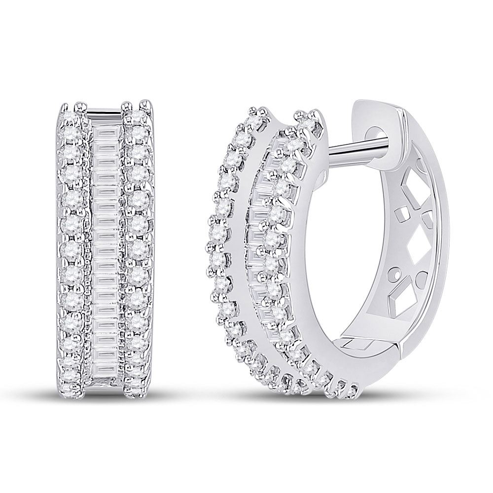 Round Baguette Diamond Hoop Earrings 1/2 Cttw 10KT White Gold