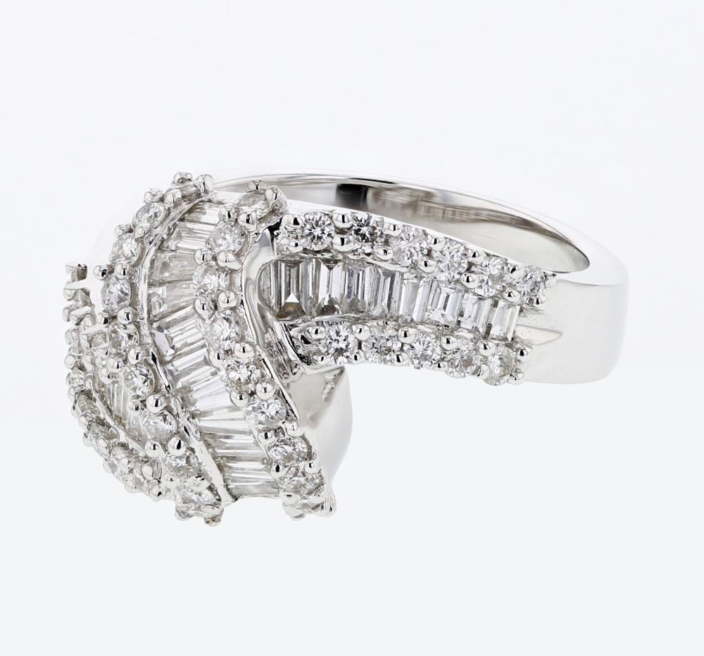 REF-212Y5X ---- Round & Baguette Diamond Ring in 18K White Gold
