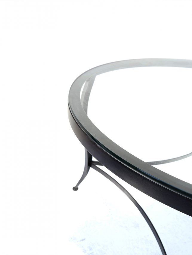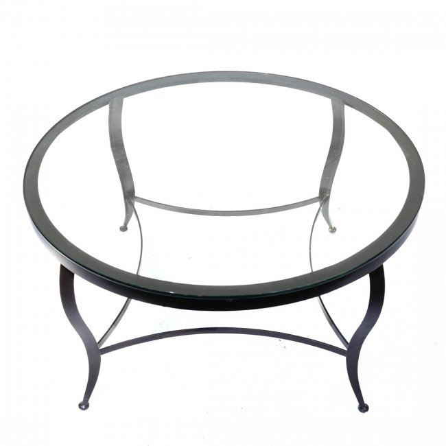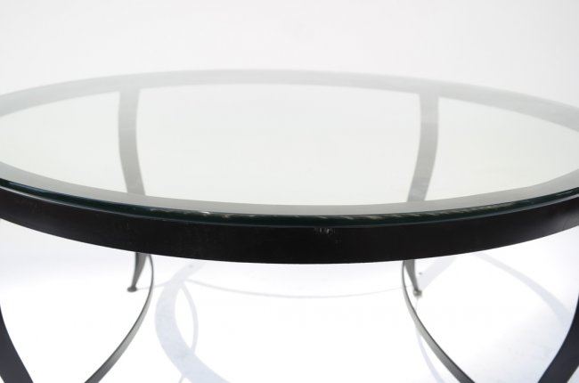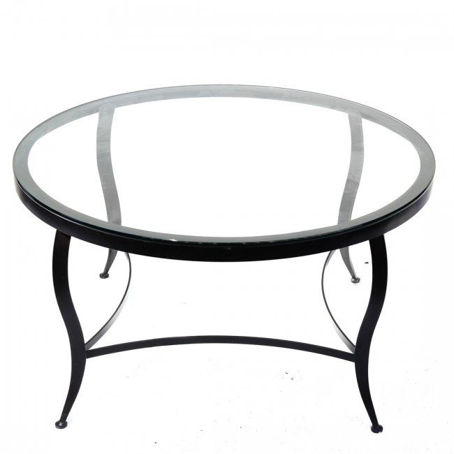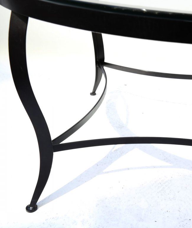 Black matte finish glass top coffee table. [36" W x 20 1/4" H].