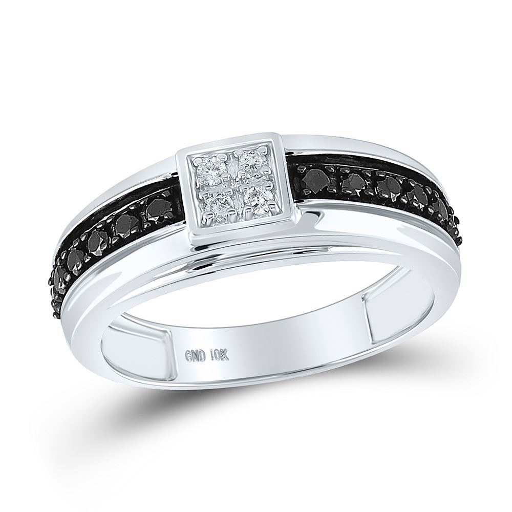 10kt White Gold Mens Round Black Color Enhanced Diamond Band Ring 1/2 Cttw.