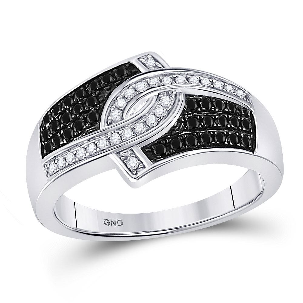 REF-22X7Y - SKU: GD94608 ---- Round Black Color Enhanced Diamond Band Ring 1/3 Cttw 10kt White Gold