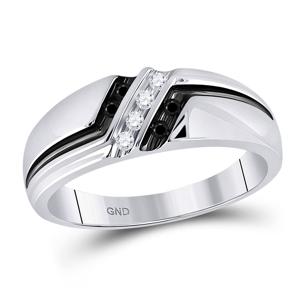 10kt White Gold Mens Round Black Color Enhanced Diamond Band Ring 1/5 Cttw.