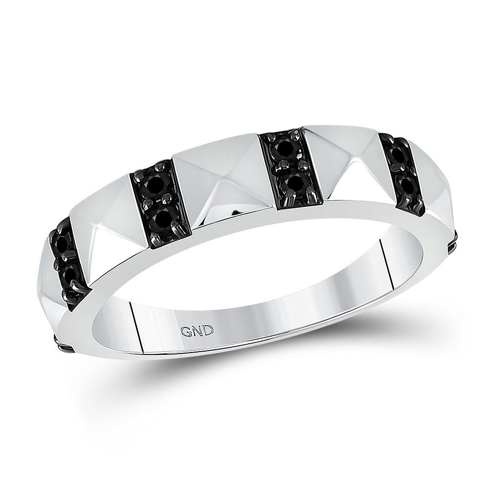 REF-20G9M - SKU: GD82537 ---- Round Black Color Enhanced Diamond Band Ring 3/8 Cttw 10kt White Gold
